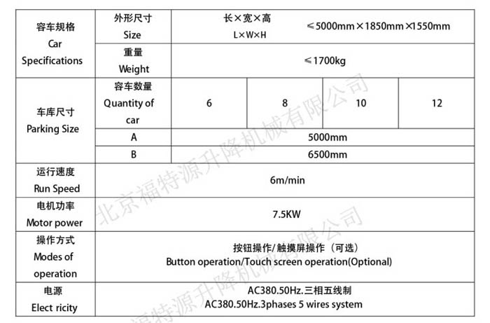 垂直循環停車設備常規參數 / Product Parameter